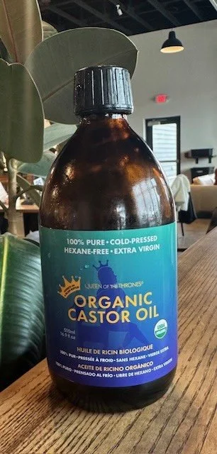 Castor Oil should be in a dark, glass bottle. The quality of it is important. It can be used for a host of different ailments. I use Queen of Thrones brand. I have used it topically on my body a few nights each week. There are a lot of people who buy cotton pads or castor oil packs but I simply wear old cotton pajamas on those nights and then sometimes I throw a heating pad over myself and relax. It is said that the heat can help penetrate the oil, and regardless of the extra effect, the heat feels good so why not? I will tell you that the oil is thick and will not glide on your skin easily. I still only use it by itself without a carrier oil because I am fine with it, but some people are not. I put it into my hands and rub together vigorously to warm it up naturally and rub it all over my legs, arms, belly and chest. Sometimes I apply some around my eyes and people have said that using it on your eyebrows and eyelashes helps them grow.
